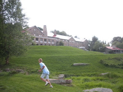 After we ate, I worked on a quilt top I had started at the quilt retreat last weekend. (Oh sheesh, I didn't even write about the quilt retreat, did I?) It's made from "homespun" type fabrics in orange, dark tan, forest green, and purple. It finished at the perfect size for a baby quilt, but it's pretty ugly for a baby quilt, being so dark and "homey" looking. I'll finish it up for a wall hanging. Darn, I really need to take pictures of these things so you can picture it when I write about them. One of these days I'll just post a slew of pictures and you'll have to figure out which posts they belong to. I might even award a prize.